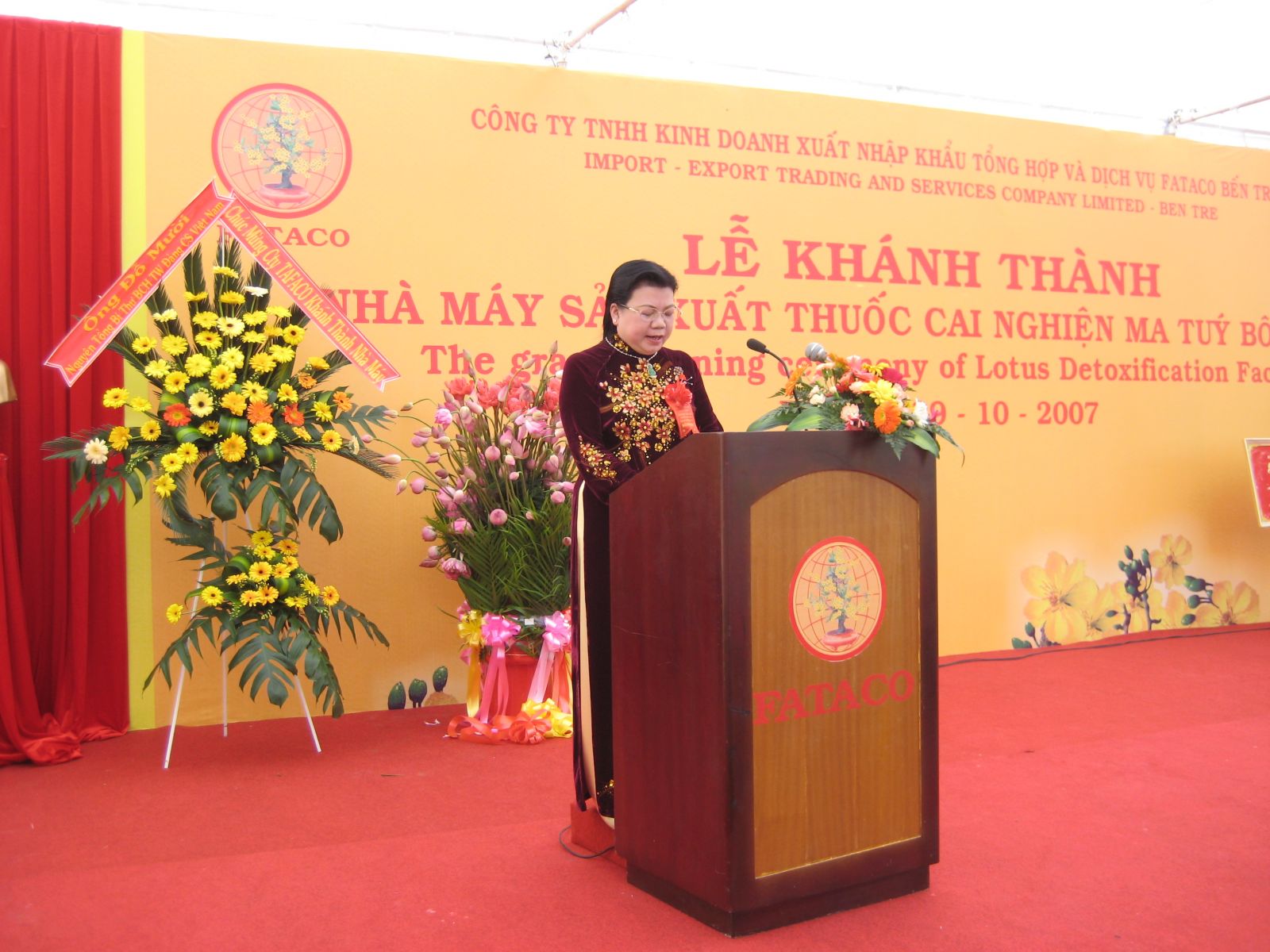 Công ty FATACO Bến Tre đã đầu tư xây dựng nhà máy đông dược tại Bến Tre đạt tiêu chuẩn GMP-WHO và tích cực trong sản xuất thuốc Bông Sen hỗ trợ cắt cơn cai nghiện ma túy để cung cấp và phân phối và đưa vào điều trị cai nghiện ma túy tại các trung tâm, cơ sở cai nghiện ma túy, bệnh viện ở các tỉnh thành cho đến hộ gia đình cai nghiện ma túy trên toàn quốc với số lượng hang chục ngàn liều thuốc Bông Sen, trong đó cung cấp miễn phí cho hơn 5000 bệnh nhân trong và ngoài nước. Dược phẩm Bông Sen với phác đồ điều trị 05-07 ngày cắt đứt cơn nghiện ma túy 100%, thuốc cắt cơn êm dịu, bệnh nhân tỉnh táo hoàn toàn, thuốc không phản ứng phụ, không tác dụng phụ, tâm sinh lý trở lại bình thường, bệnh nhân nhanh chóng phục hồi sức khỏe, tái hòa nhập với gia đình, cộng đồng.