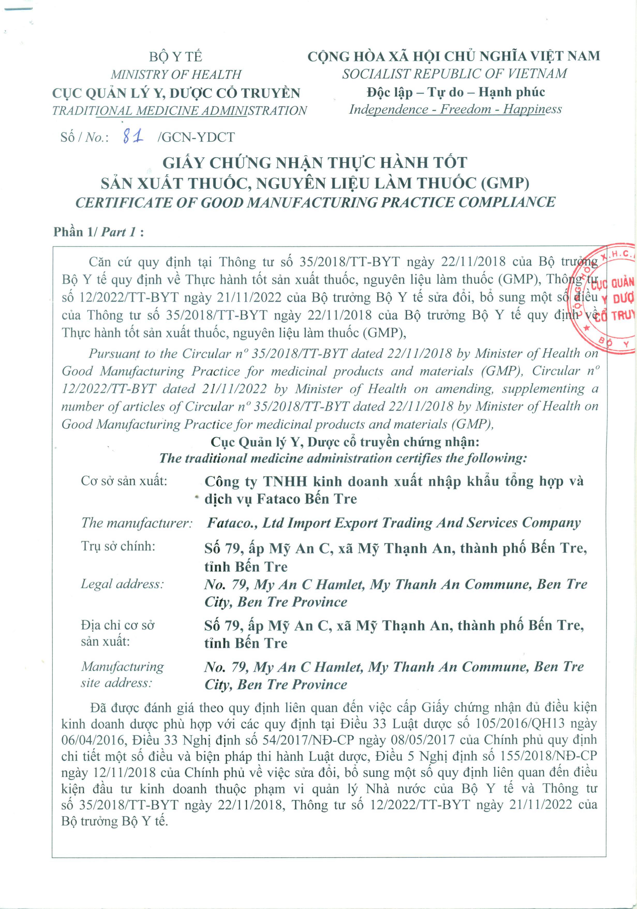 GIẤY CHỨNG NHẬN GMP-WHO